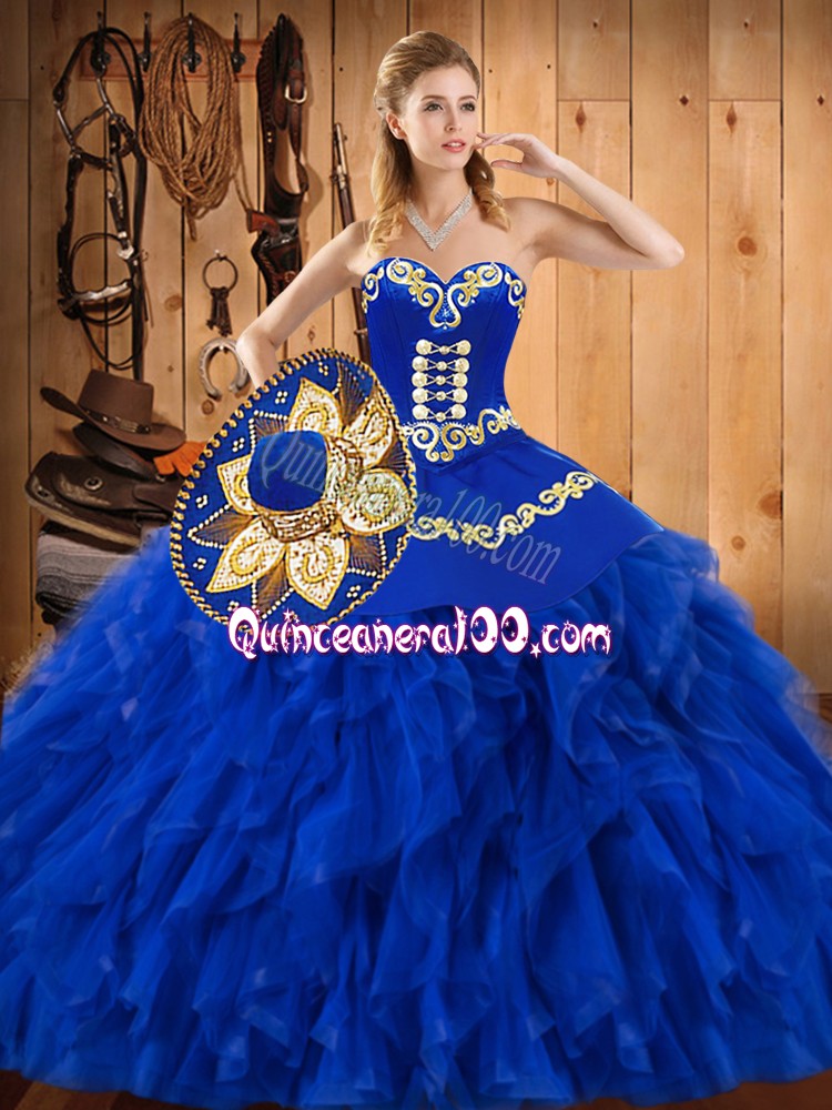 Eye-catching Floor Length Blue Sweet 16 Quinceanera Dress Sweetheart Sleeveless Lace Up