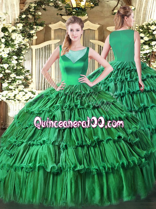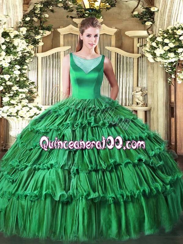 Neckline : ScoopShown Color : TurquoiseSilhouette : Ball GownsSleeve Length : sleevelessHemline : floor lengthBack Detail : Side zipperFabric : OrganzaEmbellishment : Beading,Ruffled LayersOccasion : Sweet 16,QuinceaneraSeason : Spring,Summer,Fall,Winter