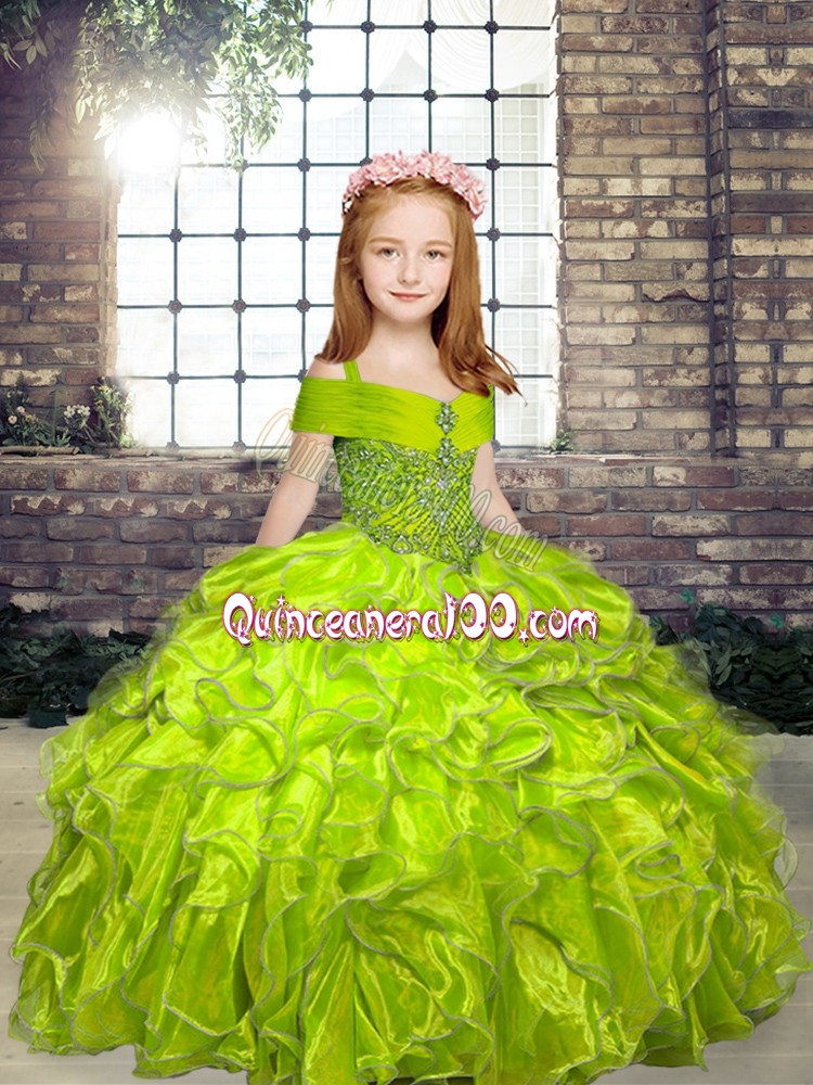Neckline : StrapsShown Color : Olive GreenSilhouette : Ball GownsSleeve Length : sleevelessHemline : floor lengthBack Detail : Lace upFabric : OrganzaEmbellishment : BeadingOccasion : Party,Wedding PartySeason : Spring,Summer,Fall,Winter