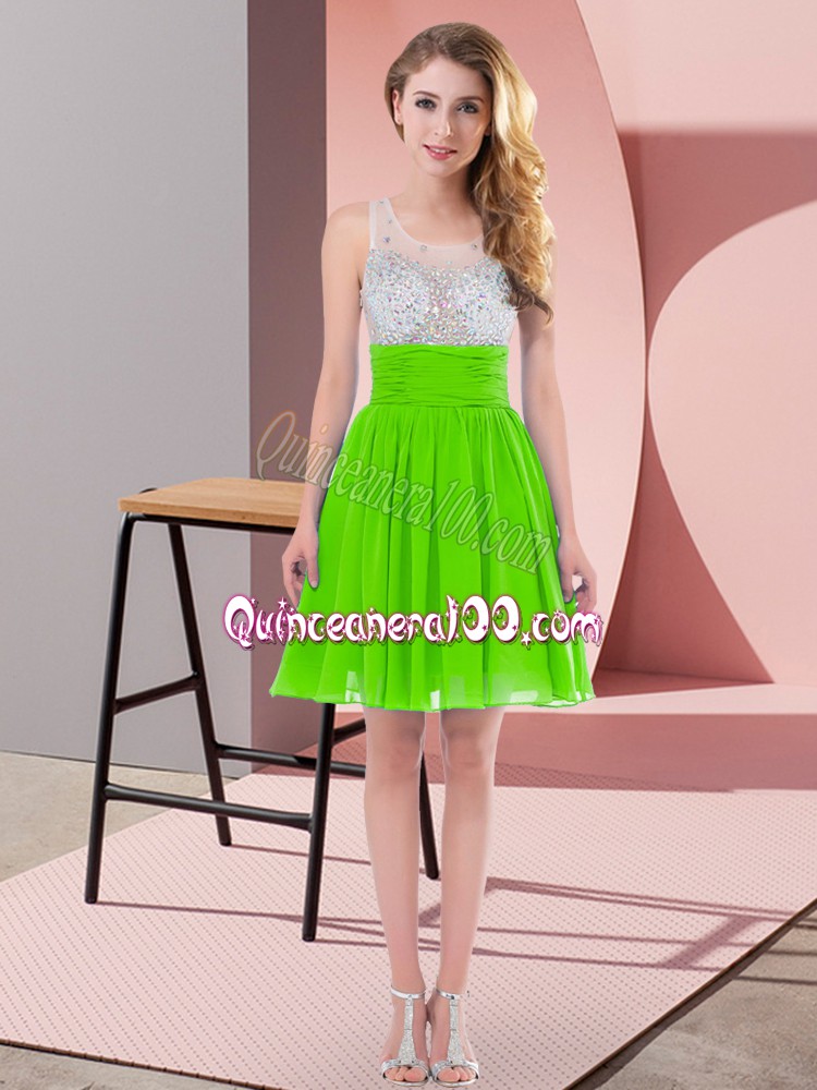 Flirting Empire Chiffon Scoop Sleeveless Beading Mini Length Side Zipper Dama Dress
