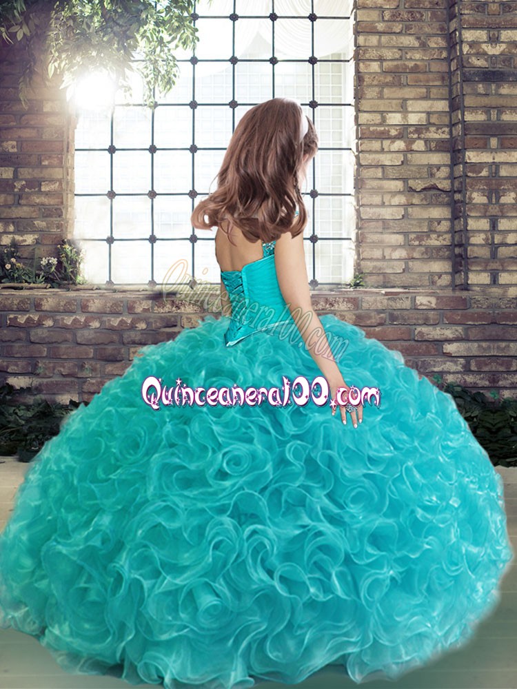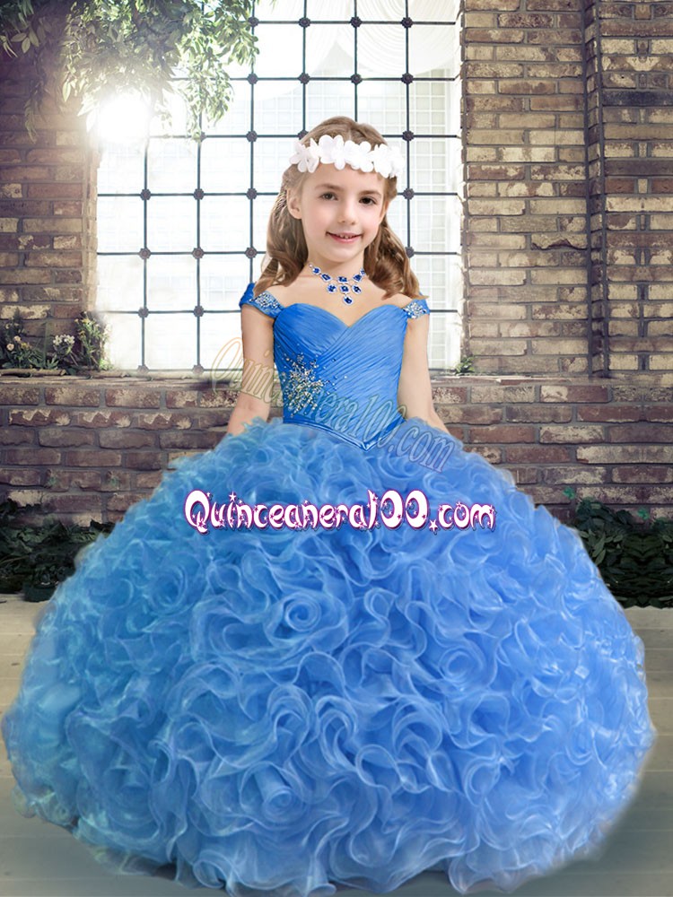Neckline : Spaghetti strapsShown Color : BlueSilhouette : Ball GownsSleeve Length : sleevelessHemline : floor lengthBack Detail : Lace upFabric : Fabric With Rolling FlowersEmbellishment : Beading,RuchingOccasion : Party,Wedding PartySeason : Spring,Summer,Fall,Winter