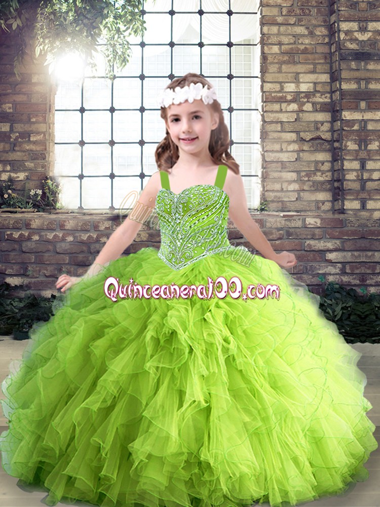 Neckline : StrapsShown Color : Spring GreenSilhouette : Ball GownsSleeve Length : sleevelessHemline : floor lengthBack Detail : Lace upFabric : TulleEmbellishment : Beading,RufflesOccasion : Party,Wedding PartySeason : Spring,Summer,Fall,Winter
