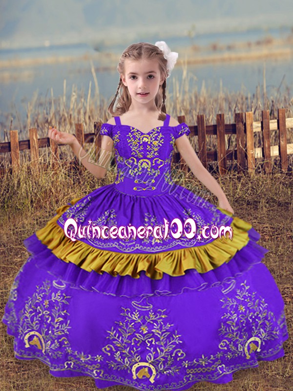 Neckline : Off the shoulderShown Color : LavenderSilhouette : Ball GownsSleeve Length : sleevelessHemline : floor lengthBack Detail : Lace upFabric : SatinEmbellishment : Beading,EmbroideryOccasion : Wedding PartySeason : Spring,Summer,Fall,Winter
