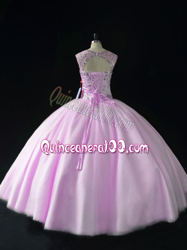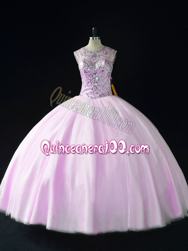 Neckline : ScoopShown Color : LilacSilhouette : Ball GownsSleeve Length : sleevelessHemline : floor lengthBack Detail : Lace upFabric : TulleEmbellishment : BeadingOccasion : Sweet 16,QuinceaneraSeason : Spring,Summer,Fall,Winter
