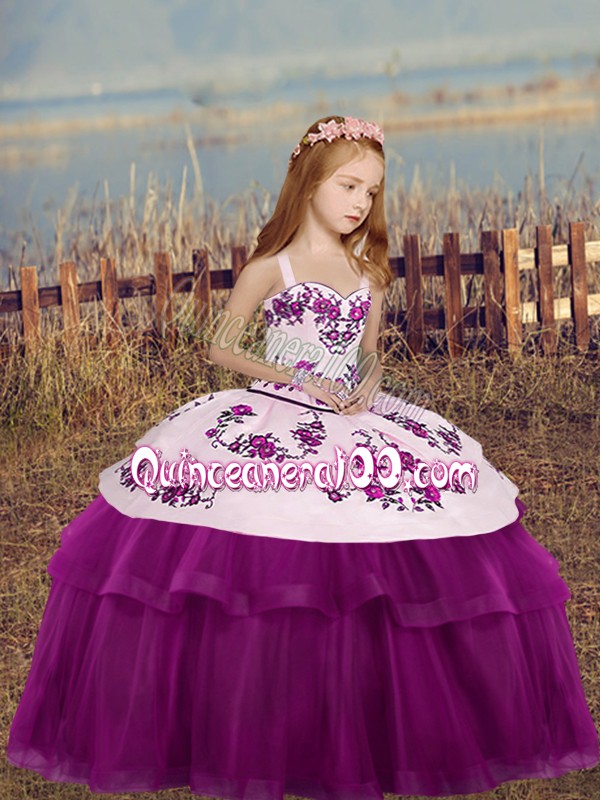 Neckline : StrapsShown Color : FuchsiaSilhouette : Ball GownsSleeve Length : sleevelessHemline : floor lengthBack Detail : Side zipperFabric : TulleEmbellishment : EmbroideryOccasion : Party,Wedding PartySeason : Spring,Summer,Fall,Winter