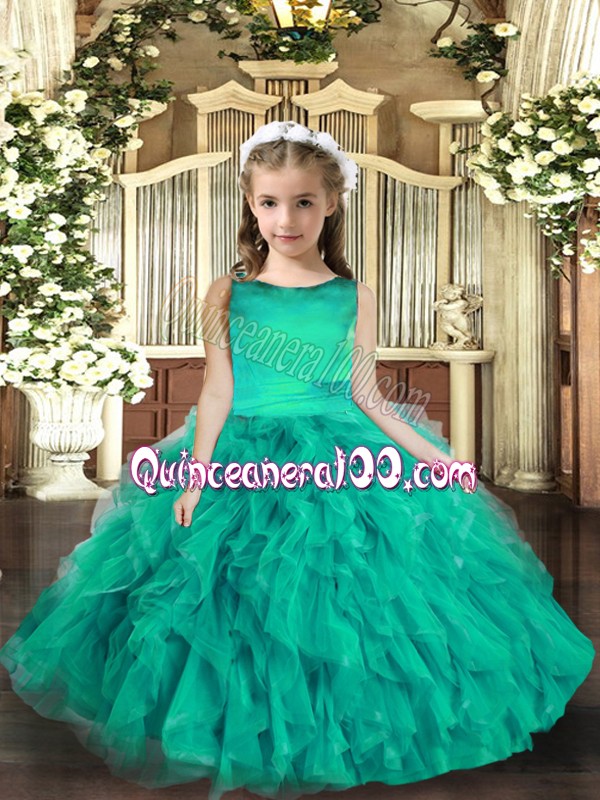 Neckline : ScoopShown Color : TurquoiseSilhouette : Ball GownsSleeve Length : sleevelessHemline : floor lengthBack Detail : Lace upFabric : TulleEmbellishment : RufflesOccasion : Party,Wedding PartySeason : Spring,Summer,Fall,Winter