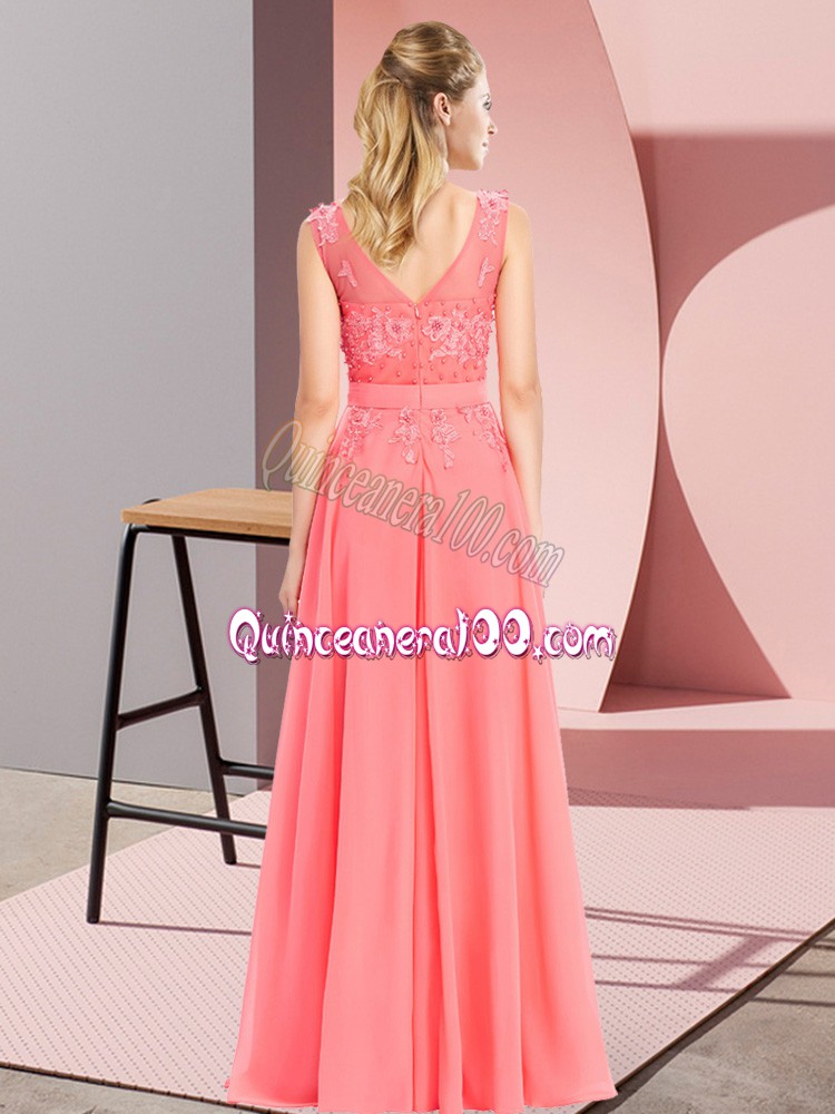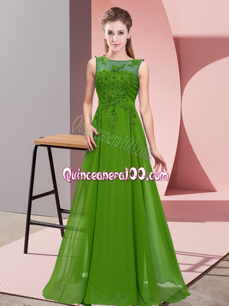 Neckline : ScoopShown Color : GreenSilhouette : EmpireSleeve Length : sleevelessHemline : floor lengthBack Detail : ZipperFabric : ChiffonEmbellishment : Beading,AppliquesOccasion : Wedding PartySeason : Spring,Summer,Fall,Winter