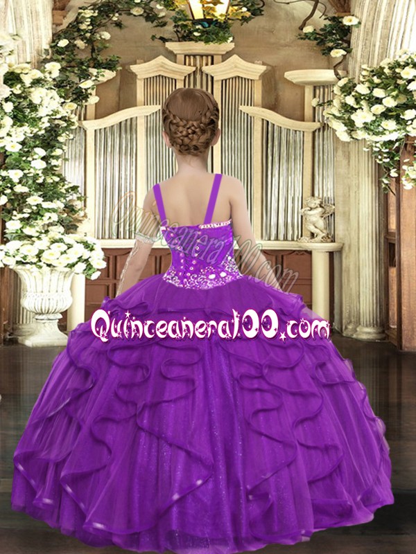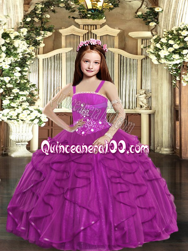 Neckline : StrapsShown Color : FuchsiaSilhouette : Ball GownsSleeve Length : sleevelessHemline : floor lengthBack Detail : Lace upFabric : TulleEmbellishment : Beading,RufflesOccasion : Party,Sweet 16,Wedding PartySeason : Spring,Summer,Fall,Winter